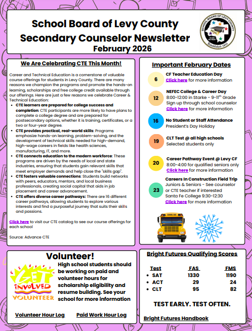 Nestled in the heart of Florida, our district is committed to fostering an environment that encourages curiosity, creativity, and compassion. From our youngest learners in early education programs to our graduating seniors, we strive to empower each child to reach their highest potential. With dedicated educators, supportive families, and vibrant community partnerships, we’re proud to offer safe, inclusive, and engaging schools where students can grow academically, socially, and emotionally. Explore our district, join our journey, and discover how we’re shaping tomorrow’s leaders—right here in Levy County!
