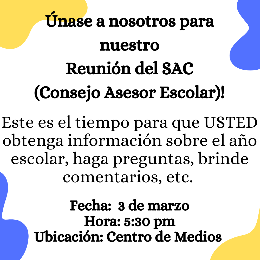 SAC Meeting TOMORROW!