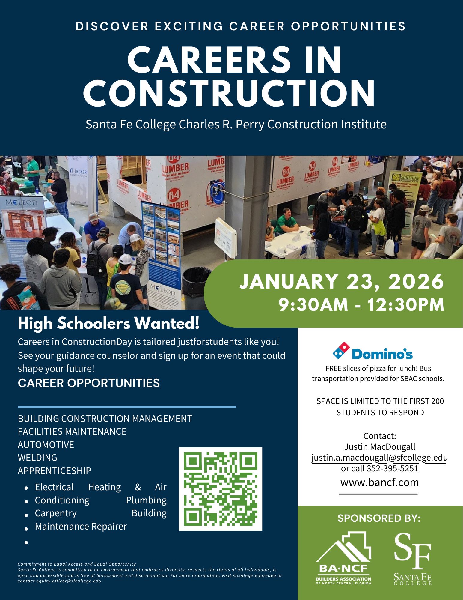 Check out this exciting opportunity for 10th-12th (16+ age required) grade students who may want a career in construction. Please see the document below for active links and more information about ...